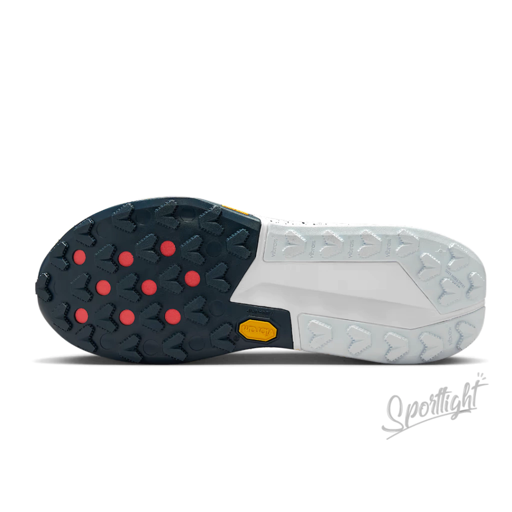 A sola Vibram Zegama, feita com a tecnologia Vibram Megagrip, entrega tração superior graças ao seu padrão de cravos diversificado e espaçamento largo. Isso proporciona aderência excepcional em terrenos técnicos, garantindo que você mantenha o controle em qualquer desafio.
